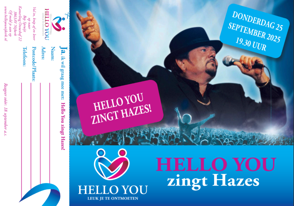 Ontdek de gastvrijheid van Hello You! Ben je woonachtig in Nijkerk en heb je een verstandelijke beperking? Wil je in je vrije tijd genieten van gezellige avonden en leuke activiteiten, waar je nieuwe mensen kunt ontmoeten in een vriendelijke sfeer? Dan ben je bij Hello You aan het juiste adres!